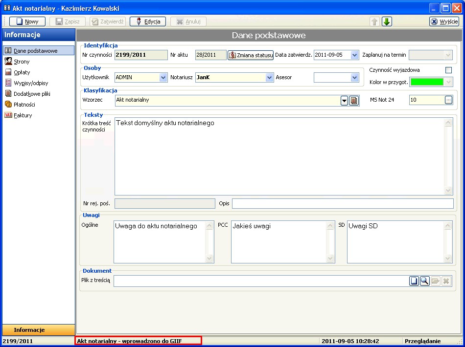 Modyfikacja okna zatwierdzenia czynności notarialnych