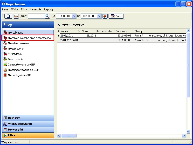 W filtrach Repertorium dodano opcję "Niezafakturowane oraz niezapłacone"