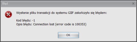 Podczas wysyłania pliku do GIIF i w przypadku braku dostępności systemu teleinformatycznego przy próbie przesłanie pliku może pojawić się komunikat.