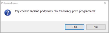 Program zapyta o zapis pliku na dysku oraz o wskazanie miejsca, gdzie ma zostać zapisany podpisany plik.