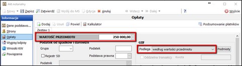 Dalej decydować będzie wartość przedmiotu podana w PLN lub w Euro, oraz kryterium oznaczenia Podlega.