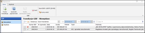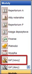 Transakcje GIIF możliwe są do utworzenia tylko z poziomu modułu GIIF. Przejść do niego można z ikony GIIF (nowy) w menu głównym programu, lub przechodząc do GIIF znajdującego się teraz w module Repertorium.