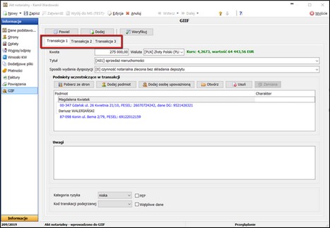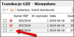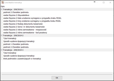 Uzupełnienie danych transakcji oraz danych podmiotów i upoważnionych skutkować będzie prawidłową weryfikacją, zmianą statusu na liście transakcji i możliwością wysyłki.