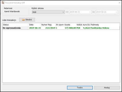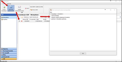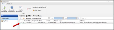 Wysłane transakcje przechodzą z sekcji niewysłanych do wysłanych.