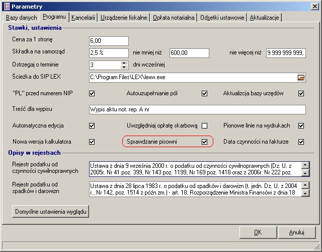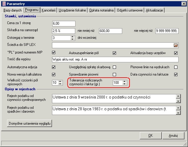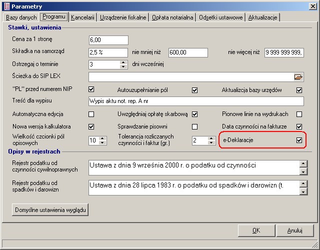 | • | zmiana parametrów stawek opłat notarialnych (Kalkulator) |