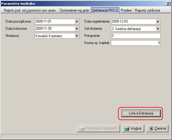 | • | Dla zwykłych czynności notarialnych dodano możliwość podania wartości przedmiotu w walucie Euro |