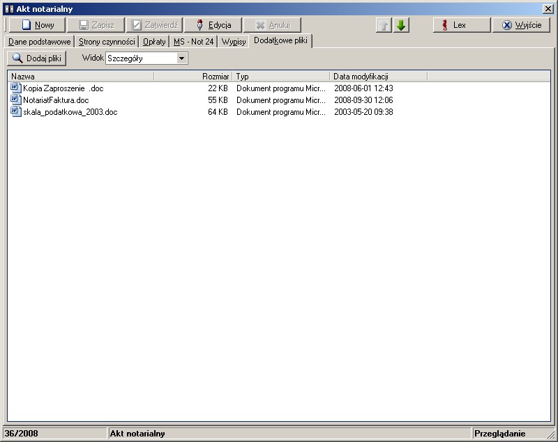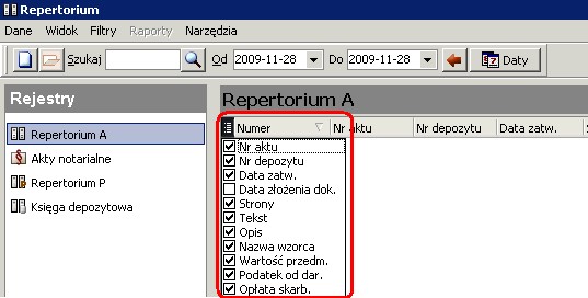 | • | Wprowadzono kolumnę z numerem Rep C dla danych w tabeli z czynnościami notarialnymi |