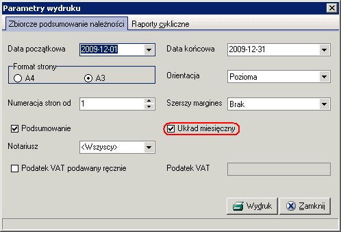 | • | wprowadzenie nowej formy wydruku poziomo na A3 (Wydruk Rep. A) |