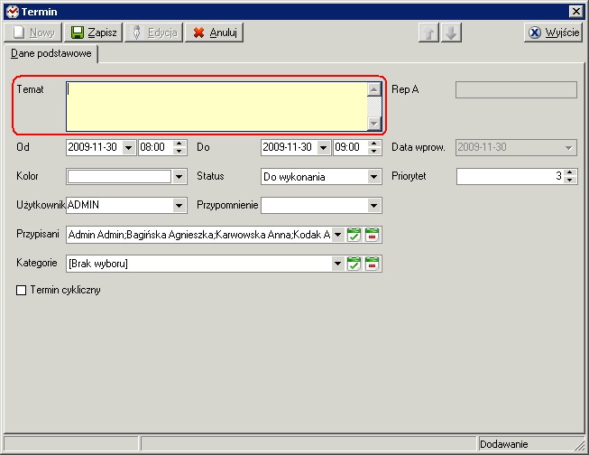 | • | Poprawiono działania uprawnień użytkownika do kalendarza |