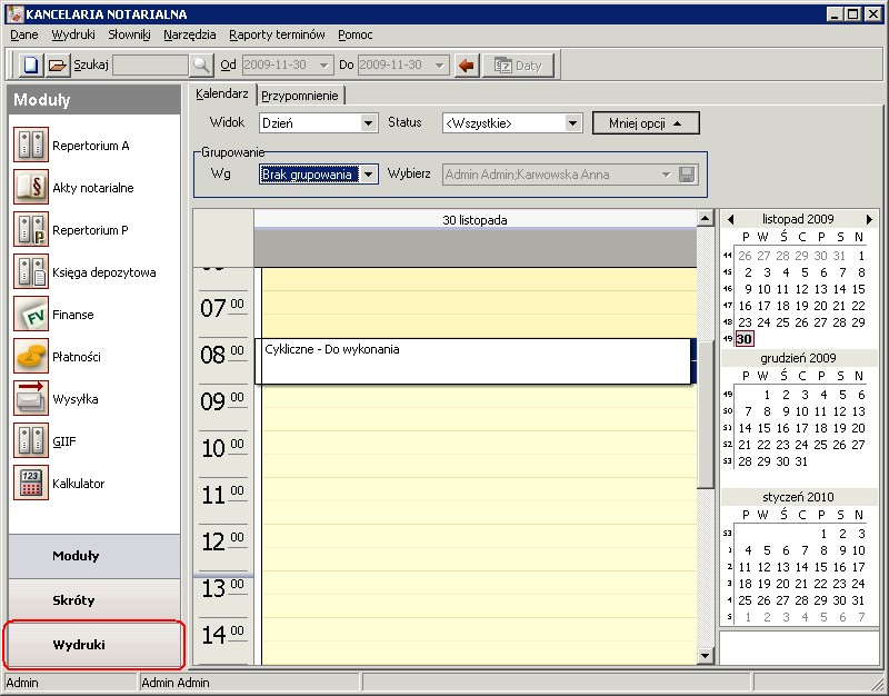 | • | W parametrach programu wprowadzono możliwość określenia czasu pracy kancelarii. Ustawienie jest wykorzystywane do wydruku odpowiedniego przedziału czasu w kalendarzu |