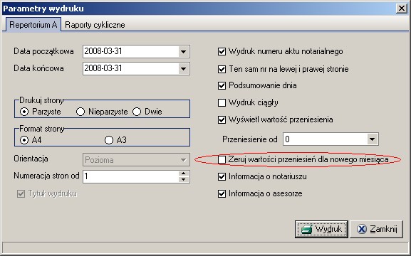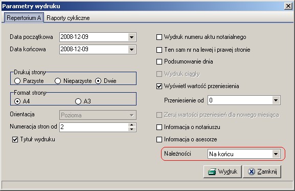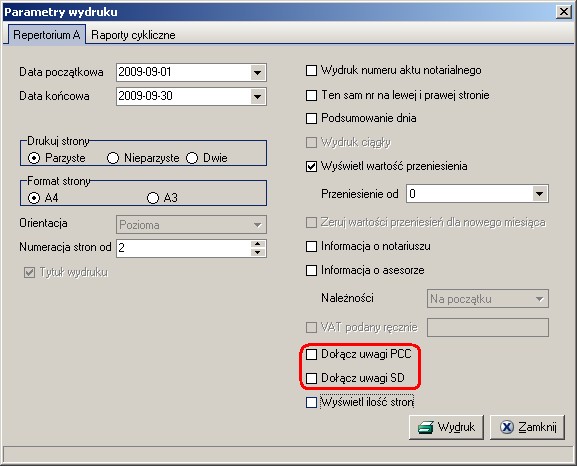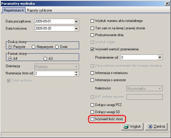 | • | nowa opcja sposobu numeracji stron repertorium; obie strony parzysta i nieparzysta mogą mieć tę samą numerację (Wydruk Rep. A) |
