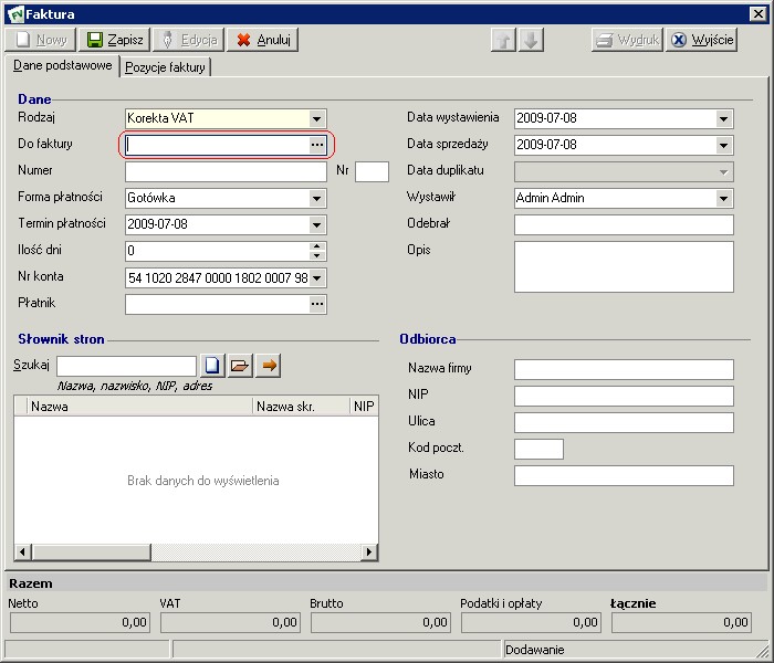 | • | Usprawniono dodawanie nowych pozycji faktury |