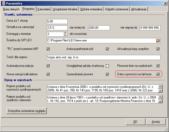 | • | wyłączenie wydruku wartości podatku od CCP 0% w repertorium A, jeżeli w opłatach następuje zwolnienie z podatku (Wydruk Rep. A) |